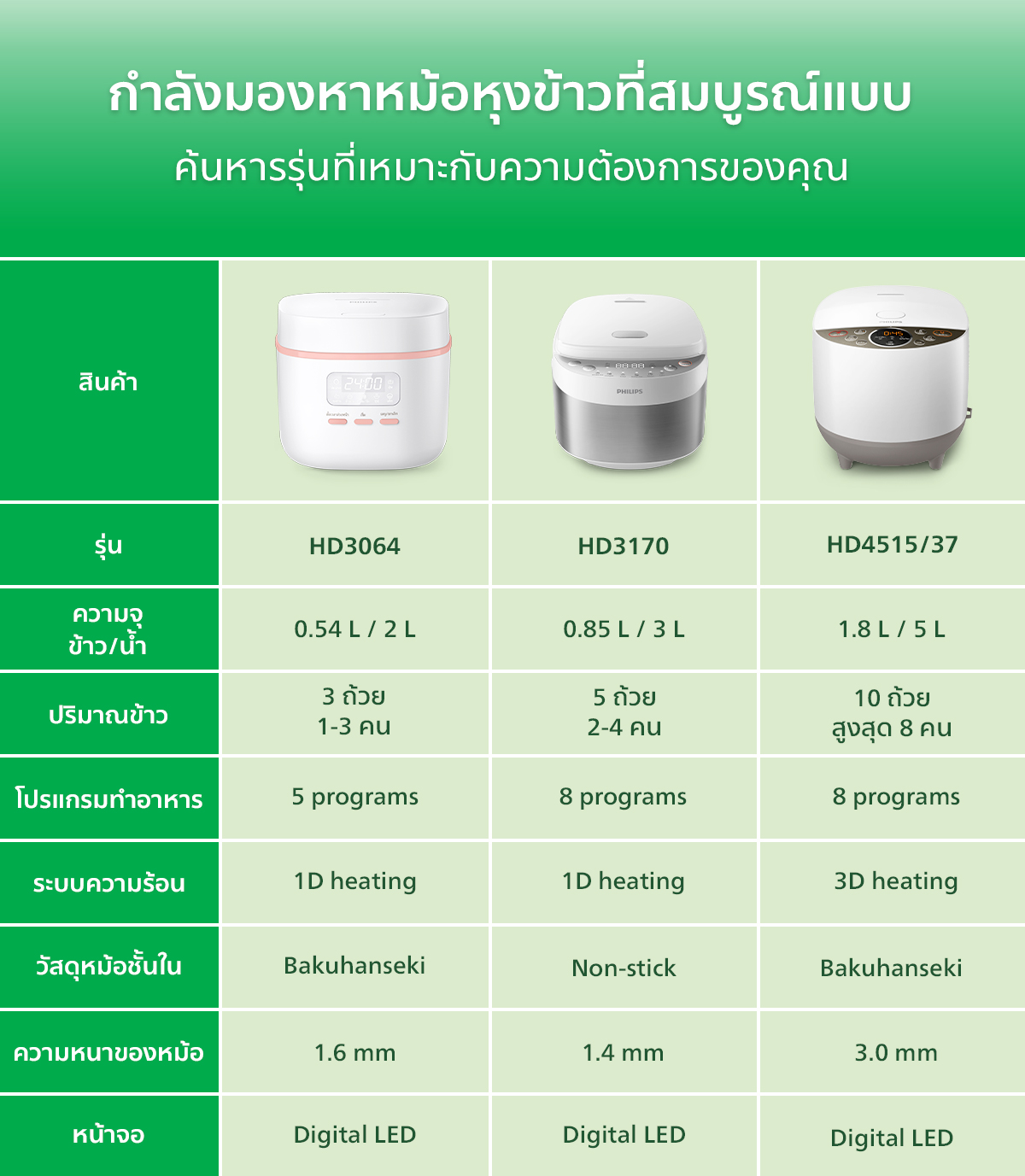 - ขนาดกะทัดรัด 0.54 ลิตร ใส่ข้าวได้สูงสุด 3 ถ้วย สำหรับครอบครัว 1-3 คน