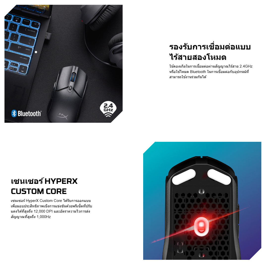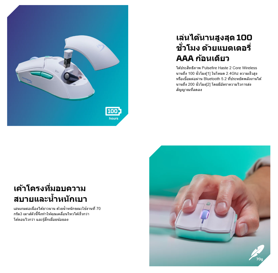 HyperX Pulsefire Haste 2 Core Wls - เมาส์เกมมิ่ง (Wht/Grn/Pur)